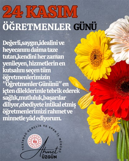 GENÇLİK VE SPOR İL MÜDÜRÜMÜZ AHMET ÜZGÜN’ÜN ''24 KASIM ÖĞRETMENLER GÜNÜ" İLE İLGİLİ MESAJI...