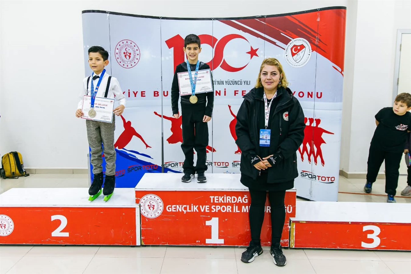 Yarışlar sonunda düzenlenen ödül töreninde dereceye giren sporcuların ödülleri KYK Genel Müdürümüz RECEP Ali ER,Süleymanpaşa Gençlik ve Spor İlçe Müdürümüz Hüseyin MUTLU,Spor Şube Müdürümüz Arzu YİĞİT,Şube Müdürümüz Mehmet DEMİRCİ,Süleymanpaşa Olimpik Buz Sporları Salonu Tesis Amiri Özcan ÇAKMAK,Buz Pateni Federasyonu As Başkanı Orhan Şahin,Buz Pateni Federasyonu Yönetim Kurulu Üyesi Derya AKSOY,Buz Pateni Federasyonu Dış İlişkiler Kurulu Başkanı ve Merkez Hakem Kurulu Başkanı Ece ESEN,Tekirdağ İl Temsilcisi Dilek KOŞAR KOCAMAN,Bursa İl Temsilcisi Eda AKALIN tarafından takdim edildi.