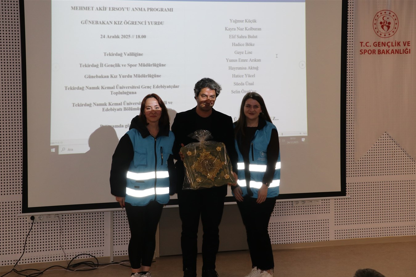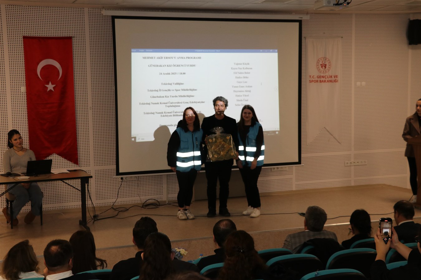 Programda Tekirdağ Vali Yardımcımız Sayın Mustafa Çek,Gençlik ve Spor İl Müdürümüz V. Mehmet Demirci,Süleymanpaşa Gençlik ve Spor İlçe Müdürümüz Hüseyin Mutlu, Eğitim,Sosyal ve Kültürel Faaliyetler Şube Müdürümüz Özlem Aygencel' de yer aldı.