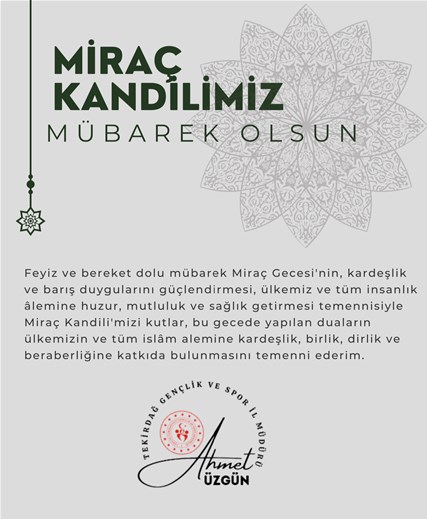 GENÇLİK VE SPOR İL MÜDÜRÜMÜZ AHMET ÜZGÜN'ÜN "MİRAÇ KANDİLİ" MESAJI...