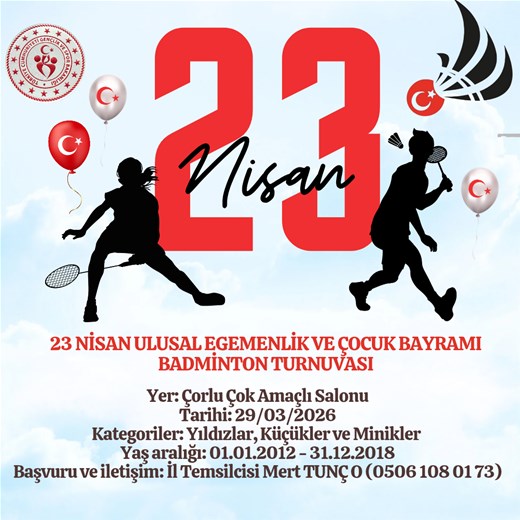 23 NİSAN ULUSAL EGEMENLİK VE ÇOCUK BAYRAMI BADMİNTON TURNUVASI BAŞLIYOR!